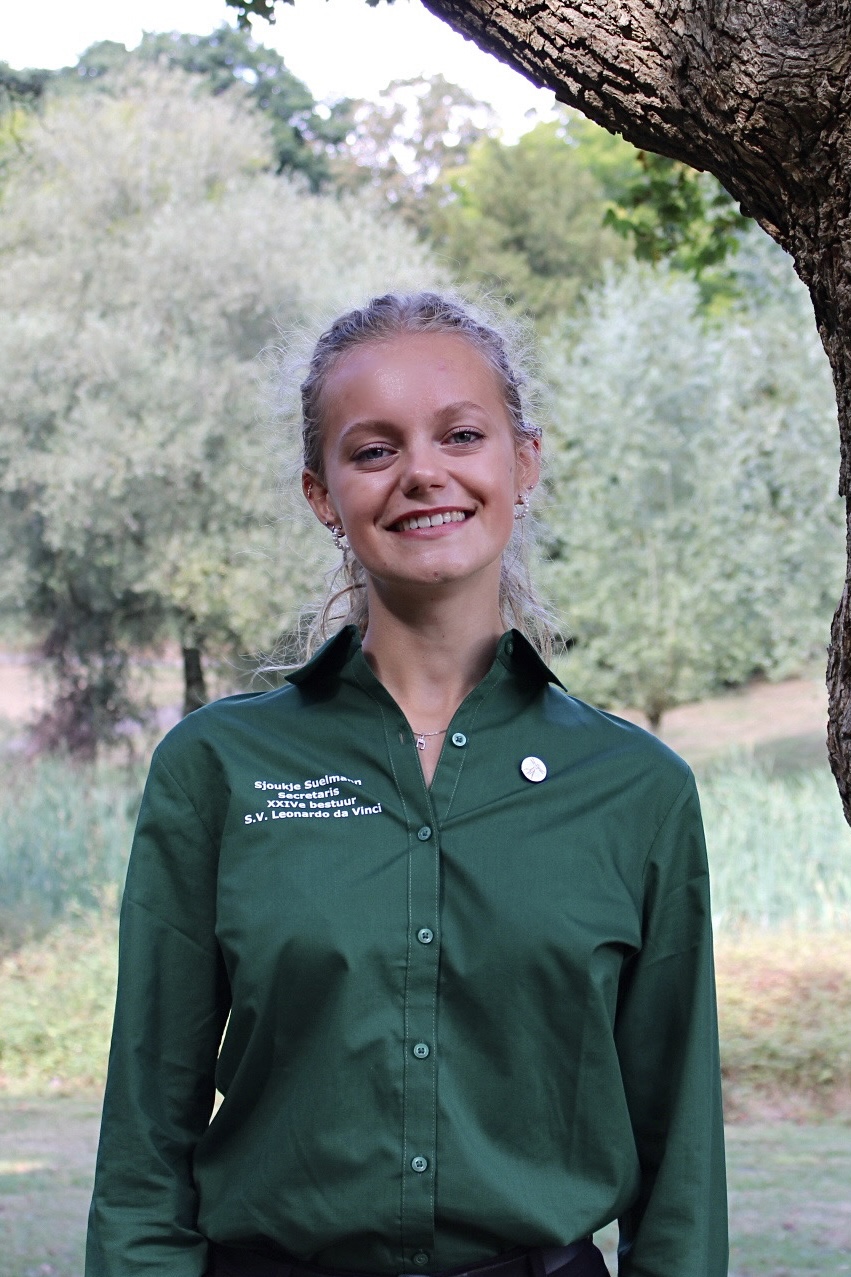Ik ben Sjoukje, 19 jaar en tweedejaars Natural Sciences student en dit jaar de secretaris van Leo. Ik kom uit Roermond waar ik met veel plezier elk weekend nog naar toe ga om onder andere te werken en met vrienden af te spreken. Vorig jaar heb ik de sfeer mogen ervaren binnen de vereniging. Hier ben ik het jaar begonnen bij de ETcie en later in het jaar ook bij de Accie gegaan. Ik heb heel veel zin in komend jaar en ik sta altijd open om even gezellig te kletsen!